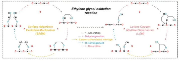 在“晶格氧机制”(Lattice Oxygen Mechanism, LOM)中,晶格氧平直参与居品(如 O₂)的造成,不同于传统的“吸附演化机制”(Adsorbate Evolution Mechanism, AEM)中依赖名义中间体的反映旅途。LOM 旅途虽可镌汰反映能垒、普及催化活性,但也随同氧空位的造成及结构不牢固性的风险。