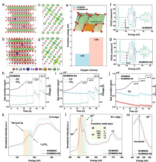图5.通过 Nd 掺杂造成强 Nd–O 键增强 TM–O 键能,防止晶格氧逸出的机制洽商。DOI: 10.1002/adfm.202519006