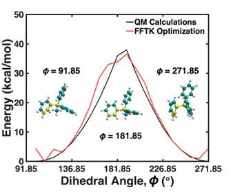 图6. MePh3P⁺中 C–C–C–P 二面角(黄色原子)在Φ = 91.85°至271.85°领域内以15°为步长变化时的能量面比较。DOI:10.1021/acsami.7b18803