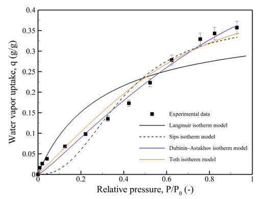 图7.硅胶在30 °C下的均衡吸附等温线暗示图。DOI: 10.1021/acs.jced.0c00927
