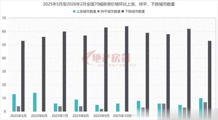 极度是与2026年1月份比较,新址价钱环比上升、抓平的城市数目之和径直翻倍!