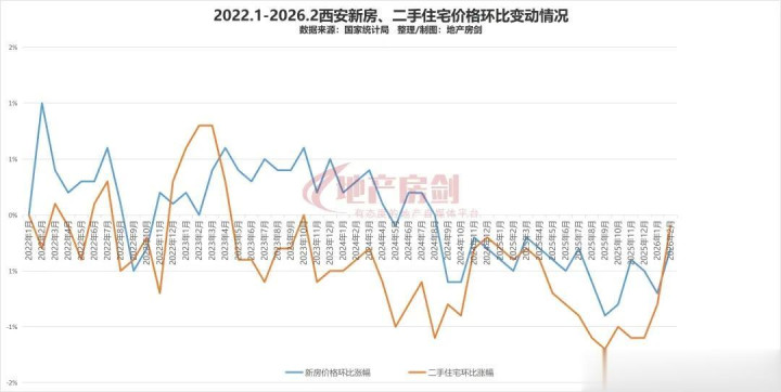 2026年2月份,西安新址价钱环比下降0.3%、同比下降5.5%,二手住宅价钱环比下降0.1%、同比下降9.1%。