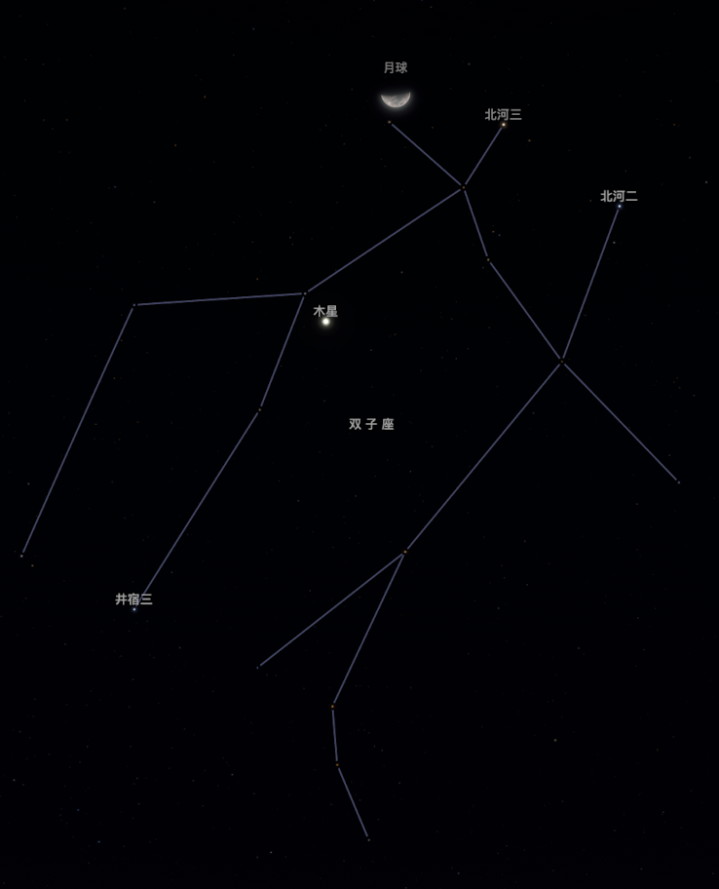 本月月球运转至双子座中并与木星相遇的本领是23日前后,木星的亮度不时保合手在-2等,日落伍不久就将能看到上弦月与木星一同出当前西南边的天外中,额外恰当不雅测。