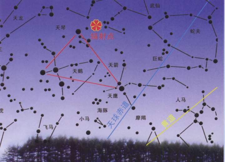 提议在22:30后出门,此时天琴座发射点升得更高,更易不雅测。