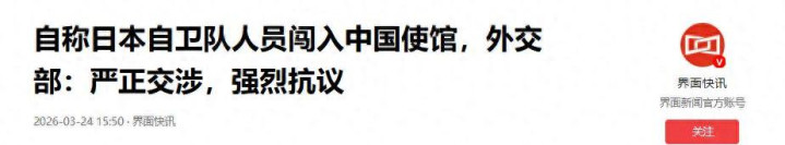 3月24日两件事让东说念主恍朦拢惚。一个日本东说念主翻墙闯入中国驻日大使馆,果然还带刀威迫要以“神的模式”伤害中国际交官。这操作挺上面吧?更离谱的是,日本果然建议要将中日干系左迁!你说,这是广宽搞事如故特意为之呢?