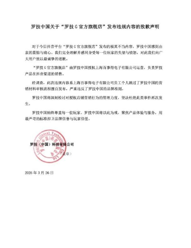 事件发酵后,罗技中国在 3 月 26 日深夜火速发布致歉声明,看似格调憨厚,实则通篇王人在甩锅推责,把扫数问题怨尤于代运营方,进一步激化了网友的不悦。