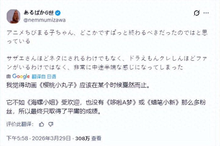 最近有东说念主漠视《樱桃小丸子》,是不是早就应该在某个节点“干脆利落地截至”?