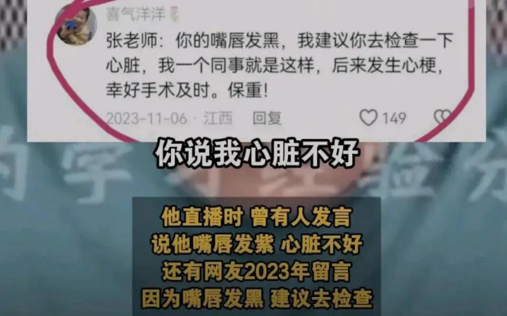 前几年的一次直播里,就禁止有东谈主留言指示:“张本分,你嘴唇发黑,一定要去查查腹黑!” 可他老是自信地反驳,娇傲我方刚跑完半马,若何可能腹黑不好。他把网友的关怀当成了打趣,却不知那发紫的唇色,恰是腹黑供血不及最直不雅的求救信号。