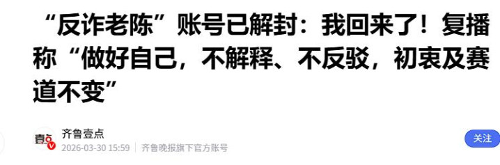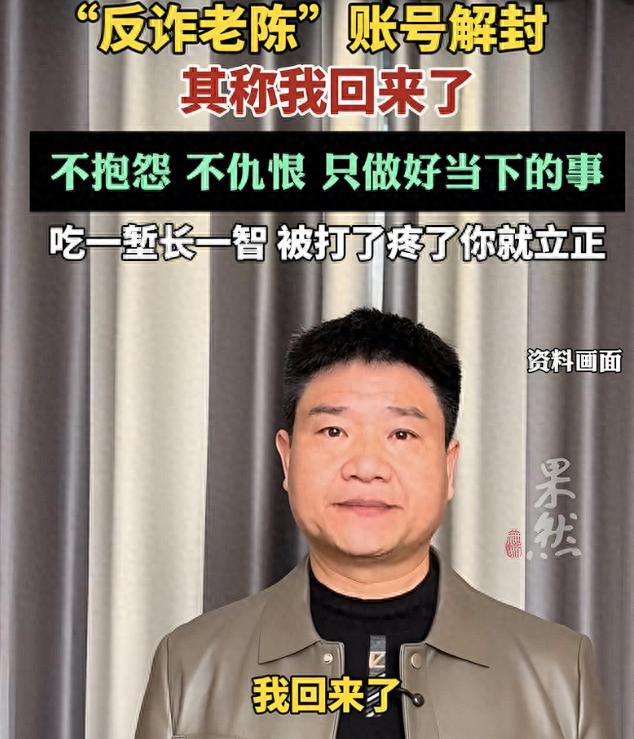 皆鲁壹点——“反诈老陈”账号已解封:我回来了!复播称“作念好我方,不明释、不反驳,初志及赛谈不变”