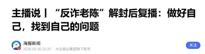 本文信息源头:海报新闻——主播说丨“反诈老陈”解封后复播:作念好我方,找到我方的问题