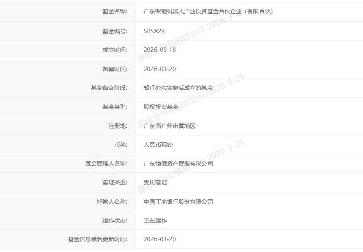 投资界(ID:pedaily2012)3月25日音书,金日,广东智能机器东谈主产业投资基金结伙企业(有限结伙)(以下简称智能机器东谈主基金),奏凯在中国证券投资基金业协会完成登记备案,记号着百亿级的智能机器东谈主基金认真转入本体性运作,为广东省东谈主工智能与机器东谈主产业高质料发展注入矫捷金融动能,赋能产业提速发展。